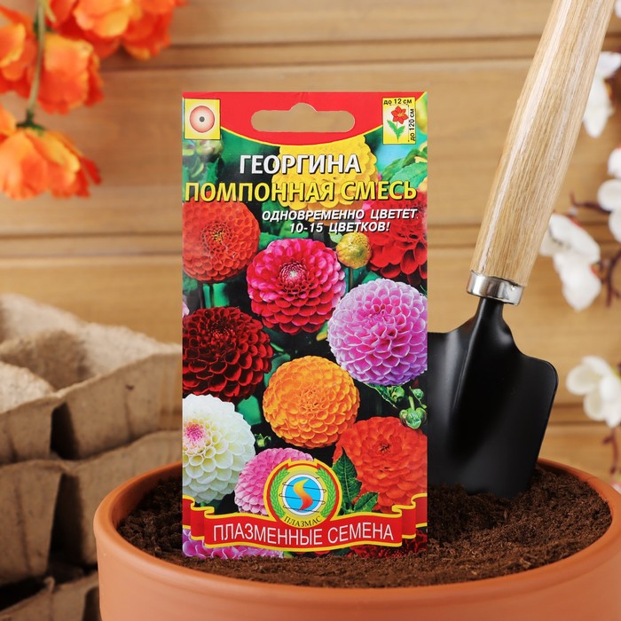"Смесь быстрорастущих однолетних георгин с махровыми сферическими соцветиями 6-8 см., похожими на мячики. Кусты высотой 110-130 см. Цветение раннее и продолжительное, с июля до заморозков. Растения тепло- и светолюбивые, неприхотливые в уходе. Хороши для выращивания в миксбордерах среди многолетников, для одиночных посадок в палисадниках и цветниках, в сочетании со среднерослыми однолетними астрами; пригодны для срезки.