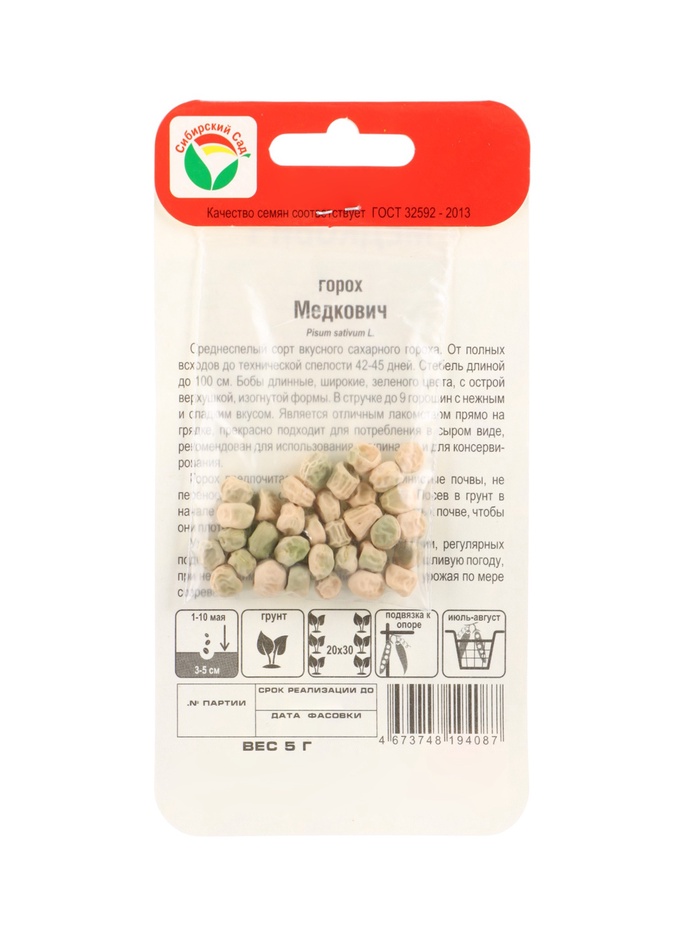 Горох предпочитает супесчаные и суглинистые почвы, не переносит свежих органических удобрений. Посев в грунт в начале мая, высеянные семена хорошо прижать к почве, чтобы они плотно соприкасались с ней.