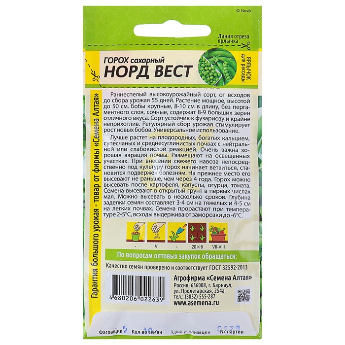 При внесении свежего навоза непосредственно под культуру горох начинает ветвиться, становится подвержен болезням. На прежнее место его высевают не раньше, чем через 4 года. Горох можно высевать после картофеля, капусты, огурца, томата. Семена высевают в открытый грунт в первых числах мая. Можно высевать в несколько сроков. Глубина заделки семян составляет 3-4 см на тяжелых и 4-5 см на легких почвах. Семена прорастают при температуре 2-5°С, всходы выдерживают заморозки до -6°С.
