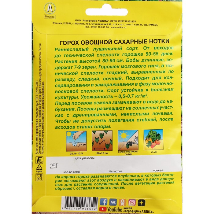 Раннеспелый лущильный сорт, от полных всходов до технической спелости 50-55 дней. Растения высотой 80-90 см, формируют по 2 боба в узле. Бобы длинные, содержат 7-9 зерен. Горошек мозгового типа, в технической спелости гладкий, выравненный по размеру, сладкий, сочный. Урожайность – 0,5-0.7 кг/м2. Рекомендуется для потребления в свежем виде, традиционного консервирования и замораживания в фазу молочно-восковой спелости. Сорт ценится за отличные вкусовые и технологические качества зеленого горошка, устойчивость к болезням культуры, дружное созревание и пригодность к одноразовой (механизированной) уборке.