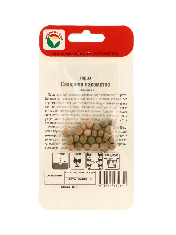 Семена Горох «Сахарное лакомство», 5 г, «Сибирский сад» — Характеристики