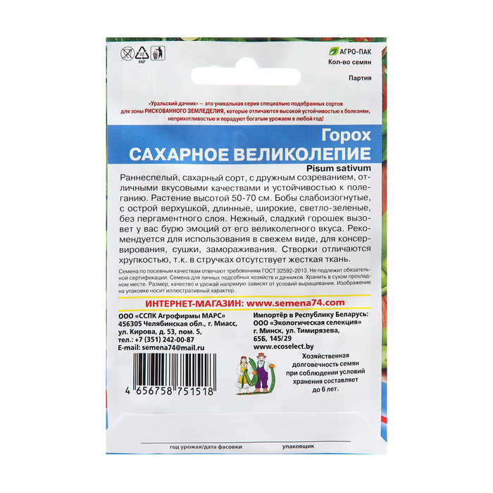 Раннеспелый, сахарный сорт, с дружным созреванием, отличными вкусовыми качествами и устойчивостью к полеганию. Растение высотой 50-70 см. Бобы слабоизогнутые, с острой верхушкой, длинные, широкие, светло-зелёные, без пергаментного слоя. Нежный, сладкий горошек вызовет у вас бурю эмоций от его великолепного вкуса. Рекомендуется для использования в свежем виде, для консервирования, сушки, замораживания. Створки отличаются хрупкостью, т.к. в стручках отсутствует жесткая ткань.