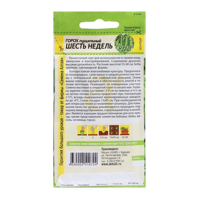 При внесении свежего навоза непосредственно под культуру горох начинает ветвиться, становится подвержен болезням. На прежнее место его высевают не раньше, чем через 4 года. Горох можно высевать после картофеля, капусты, огурца, томата. Семена высевают в открытый грунт в первых числах мая. Можно высевать в несколько сроков. Глубина заделки семян составляет 3-4 см на тяжелых и 4-5 см на легких почвах. Семена прорастают при температуре 2-5°С, всходы выдерживают заморозки до -6°С.