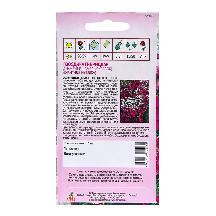 Выращивание этих семян в открытом грунте не только приносит красоту в ваш огород, но и создает гармоничную атмосферу на участке. Гвоздика «Диамант» станет удачным выбором для любителей цветущих клумб и цветников, где цветы будут радовать вас все лето.