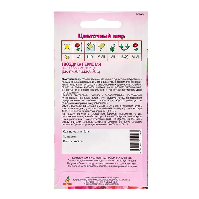 Семена Гвоздика Перистая Весенняя красавица 0.1г* — Характеристики