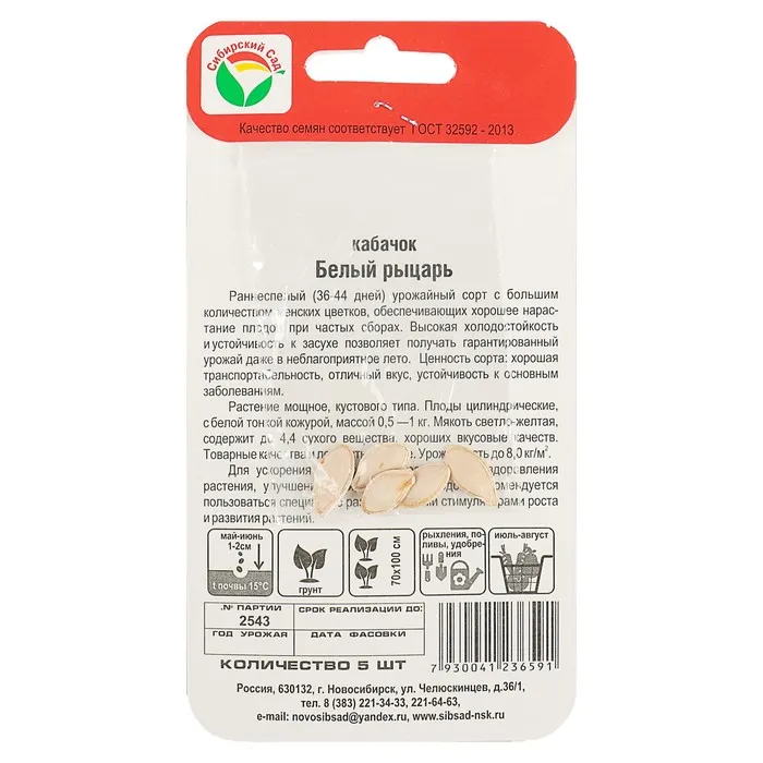 Семена Кабачок "Белый рыцарь", 5 шт. — Характеристики