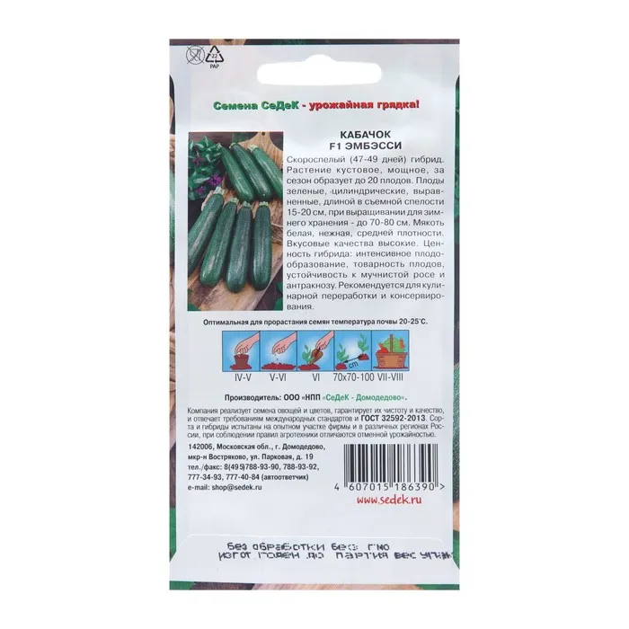 Семена Кабачок "Эмбэсси F1", 1,5 г — Характеристики
