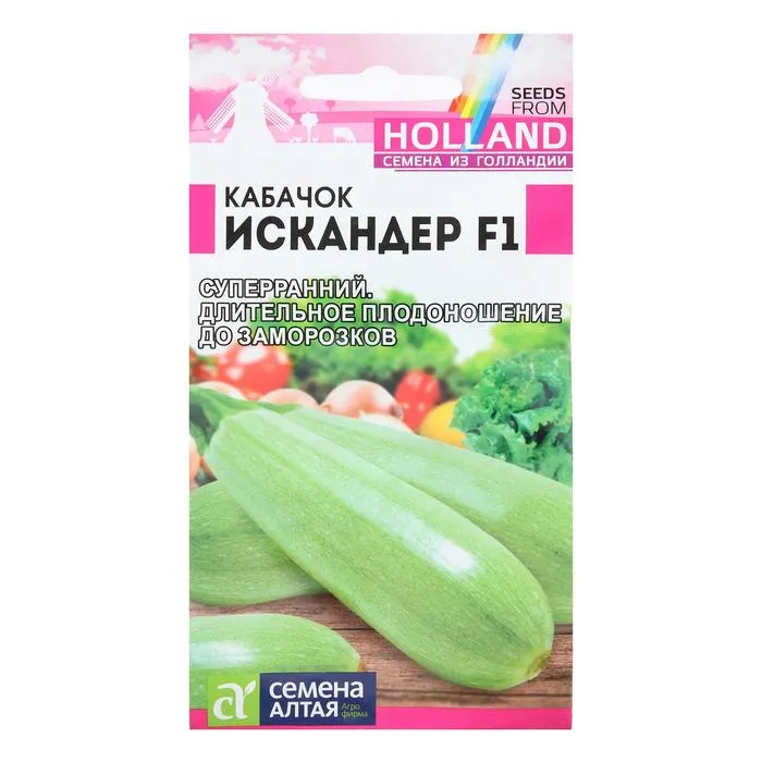 Суперранний, чрезвычайно продуктивный гибрид кабачка кустового типа. Лист светло-зеленый до темно-зеленого, среднерассеченный, с пятнистостью. Плод булавовидный с шейкой, средней длины. Масса плода 0,7 кг. Мякоть кремово-белая, нежная и очень вкусная. Кожица очень гладкая, восковая, со светлыми крапинками и прожилками. Плодоносит до первых заморозков. Семена сеют непосредственно в грунт, когда минует угроза возвратных заморозков. Для получения ранней продукции кабачки сеют на рассаду поздней весной, за две-три недели до высадки. Схема посадки 100х100 см, глубина заделки семян 3-5 см. При раннем посеве или посадке рассады в открытый грунт необходимо временное укрытие пленкой. Для получения наиболее высокого урожая рекомендуется регулярно проводить рыхление почвы и умеренные поливы. В период цветения-налива плодов рекомендуется провести подкормку комплексными минеральными удобрениями. Сбор урожая по мере созревания плодов. Не требует формировки.