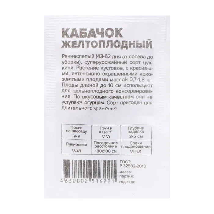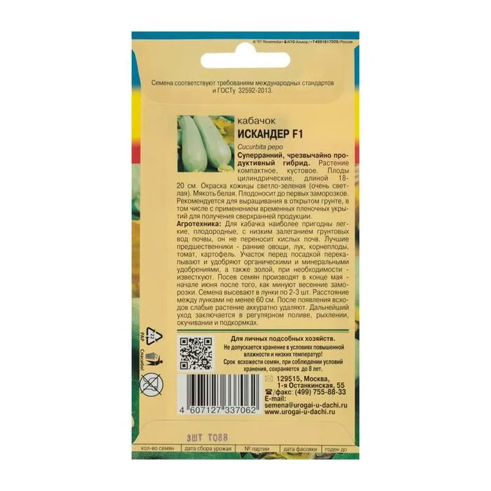 Семена Кабачок "Искандер", F1,3 шт. — Характеристики
