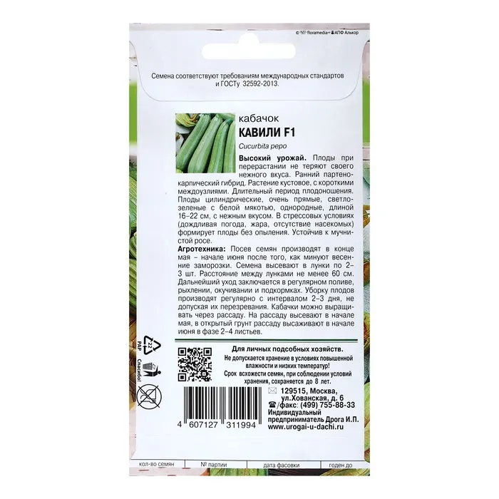 Семена Кабачок "Кавили", F1,3 шт. — Характеристики