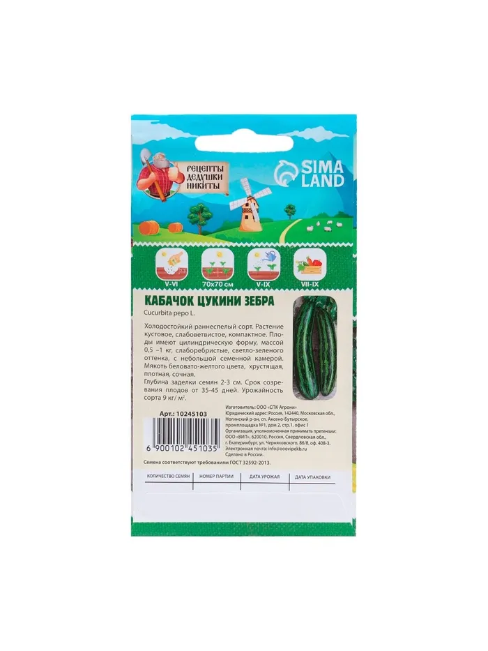 Семена Кабачок цукини "Зебра", 2 г — Характеристики