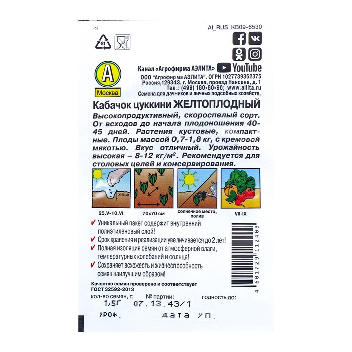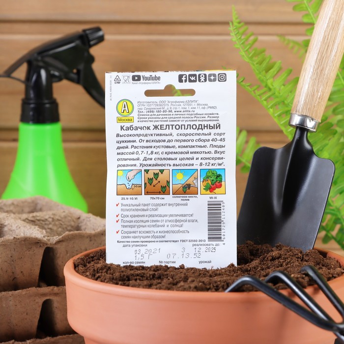 Благодаря внутреннему полиэтиленовому слою пакет не пропускает влагу и увеличивает срок годности семян до 2 лет.