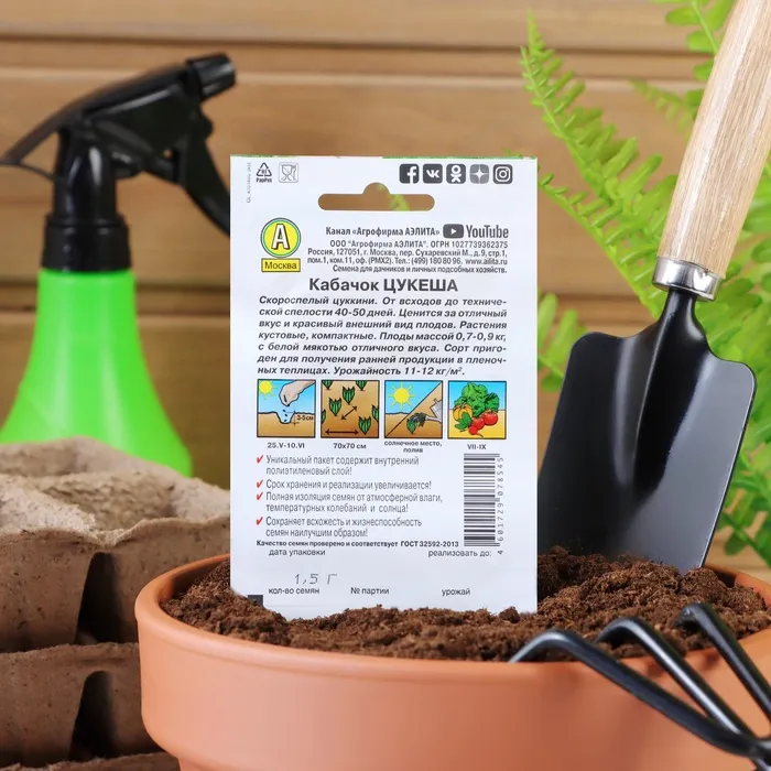 Сорт скороспелый, вступает в плодоношение на 41-50 день. Растения кустовые, компактные. Плоды цилиндрические, массой 07-0,9 кг. Кора тонкая. Мякоть белая, хрустящая, отличных вкусовых качеств. Великолепно подходит для приготовления кабачковой икры, различной кулинарной переработки, консервирования и замораживания. Один из самых высокоурожайных сортов, дает 11-12 кг/м2 товарной продукции за сезон.