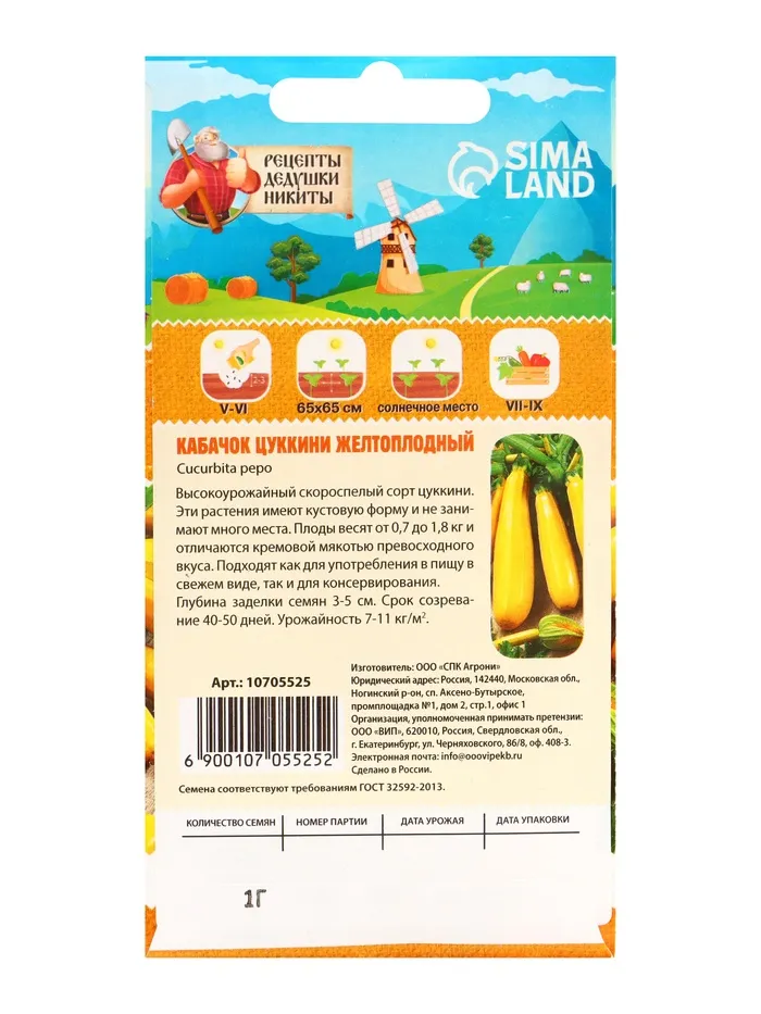 Кабачок цуккини "Желтоплодный" станет ярким и вкусным дополнением к вашему огороду, радуя вас богатым урожаем!