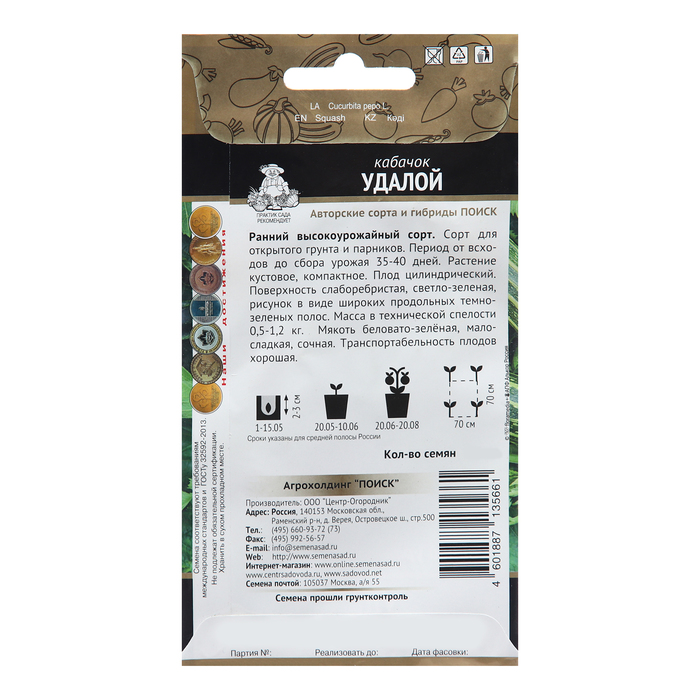 Семена Кабачок "Удалой", 12 шт — Характеристики