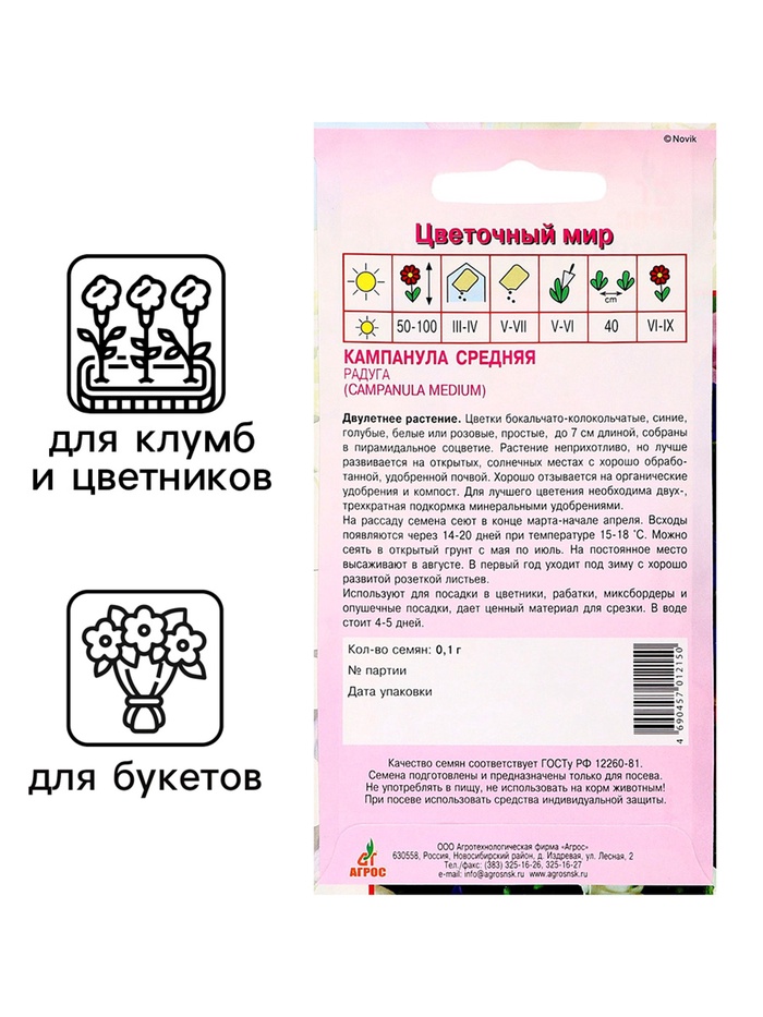 Семена Кампанула «Средняя Радуга», 0.1 г, «Агрос» — Характеристики