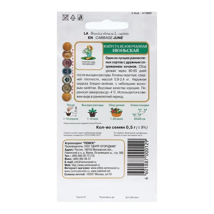 Семена Капуста белокочанная "Июньская" 0,5 г — Характеристики