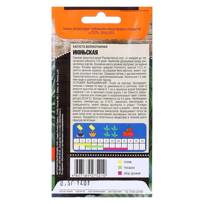 Раннеспелый сорт, от сходов до технической спелости 110 дней. Наиболее урожайный среди раннеспелых сортов. Основная масса урожая поступает за первые сборы. Кочаны круглые, средней плотности, массой 1-2,5 кг, светло-зеленой окраски, на разрезе бело-желтые, имеют хорошие вкусовые качества. Среднеустойчив к растрескиванию. Транспортабельность удовлетворительная. Используют в свежем виде в раннелетний период.