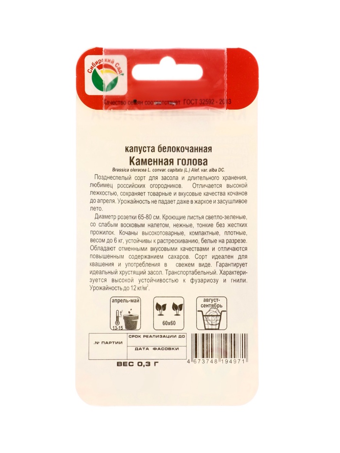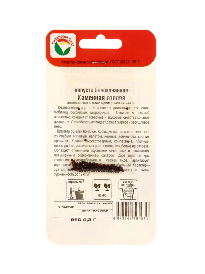 Семена Капуста белокочанная Каменная голова 0,3г — Характеристики