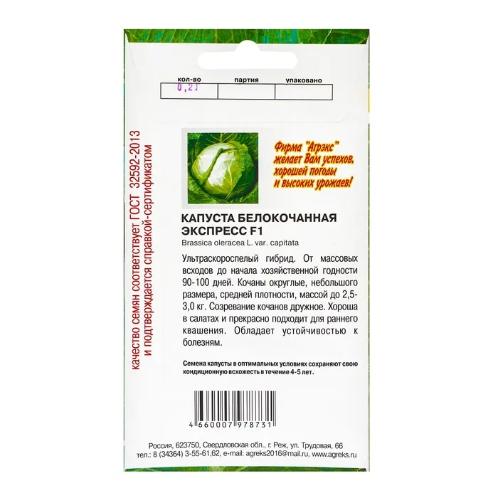 Гибрид ультраскороспелый. От полных всходов до начала созревания проходит 85-90 дней. Скороспелость удачно сочетается с высокой урожайностью и дружным созреванием. Кочан округлый, средней плотности, внутренняя структура тонкая, на разрезе беловатая. Наружная и внутренняя кочерыги короткие. Масса кочана — 1,0-1,3 кг. Вкусовые качества высокие. Гибрид устойчив к основным заболеваниям капусты. Плотность посадки — 5-6 растений/м². Урожайность — 5,0-7,0 кг/м².