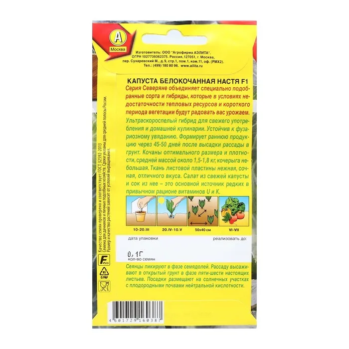 Ультраскороспелый гибрид для свежего употребления и домашней кулинарии. Устойчив к фузариозному увяданию. Формирует раннюю продукцию через 45-50 дней после высадки рассады в грунт. Кочаны оптимального размера и плотности, средней массой около 1,5-1,8 кг, кочерыга небольшая. Ткань листовой пластины нежная, сочная, отличного вкуса. Салат из свежей капусты и сок из нее – это основной источник редких в привычном рационе витаминов U и K.