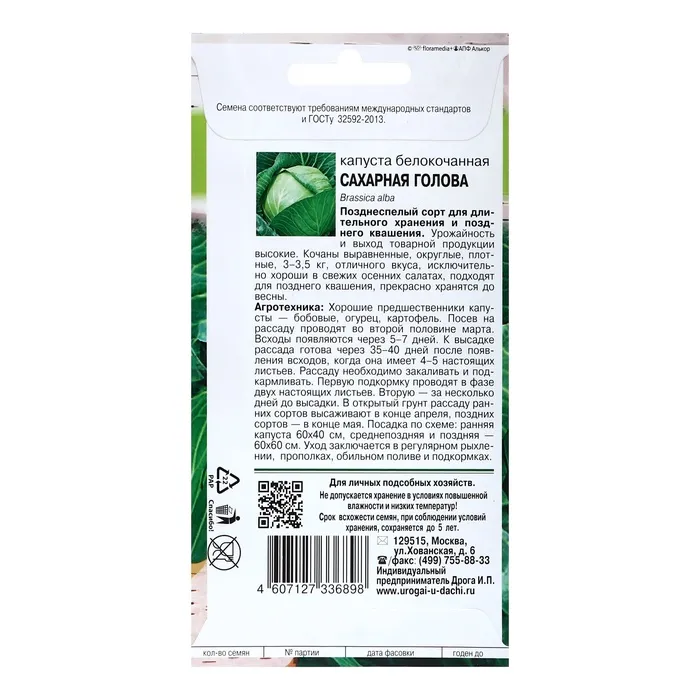 Поздний сорт. Период созревания от всходов до сбора урожая от 130 до 160 дней. Для получения обильного урожая - растение удобряют. Кочан с сахарным и сочным вкусом, крупного размера, с плотной внутренней серединой, шарообразной формы, светло-зеленого цвета, устойчив к растрескиванию. Вес одной капусты в зрелом виде до 3,5 кг. Сорт белокочанной капусты "Сахарная Голова" отличается хорошими вкусовыми качествами и повышенным содержанием витаминов. Устойчива к различным видам заболевания. Пригодна для длительного хранения в зимний период. Подходит для засолки. В кулинарии используется для приготовления: салатов, голубцов, рагу, запеканок, первых блюд и т.д. Капуста сочетается с мясом, рыбой и грибами.