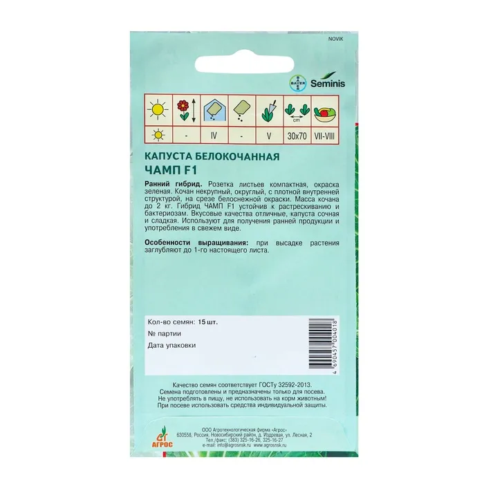Семена Капуста б/к"Чамп"F1 15шт* Seminis — Характеристики