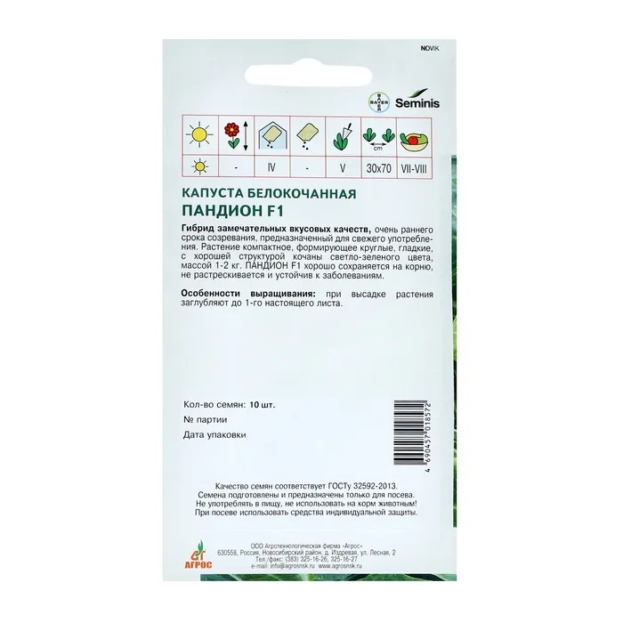 Семена капусты белокочанной гибридной разновидности "Пандион" F1 станут отличным выбором для всех, кто ценит раннее созревание и высокую урожайность. Этот гибрид идеален для посадки в открытом грунте и подходит даже для начинающих садоводов, стремящихся получить богатый и качественный урожай капусты.