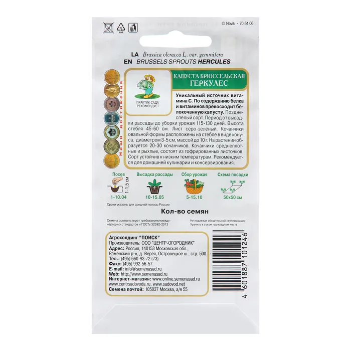 Семена Капуста брюссельская "Геркулес ", 0,5 г — Характеристики