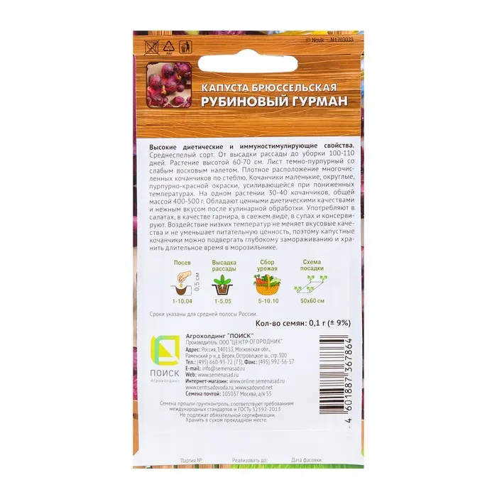 Семена Капуста брюссельская "Рубиновый гурман", 0,1 г — Характеристики