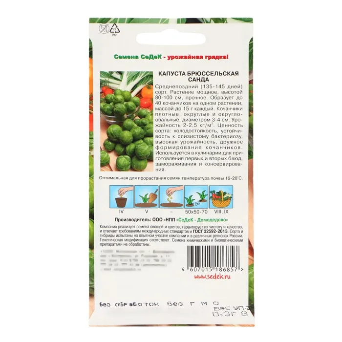 Семена Капуста брюссельская "Санда", 0,3 г — Характеристики