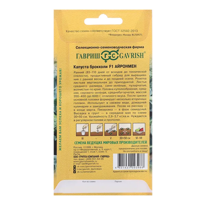 Семена Капуста Брокколи "Айронмен", ц/п, F1, 10 шт. — Характеристики