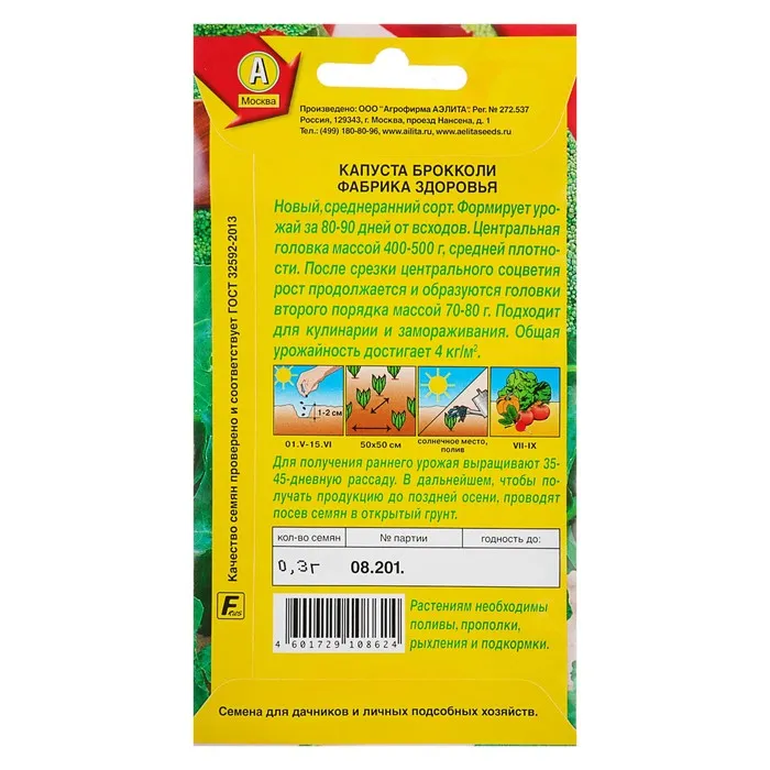 Семена Капуста брокколи "Фабрика здоровья", 0,3 г — Характеристики