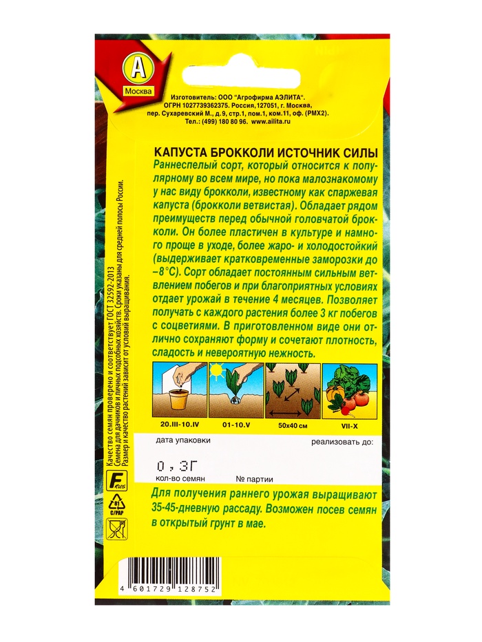 Семена Капуста брокколи «Источник силы», 0.3 г, «Агрофирма АЭЛИТА» — Характеристики