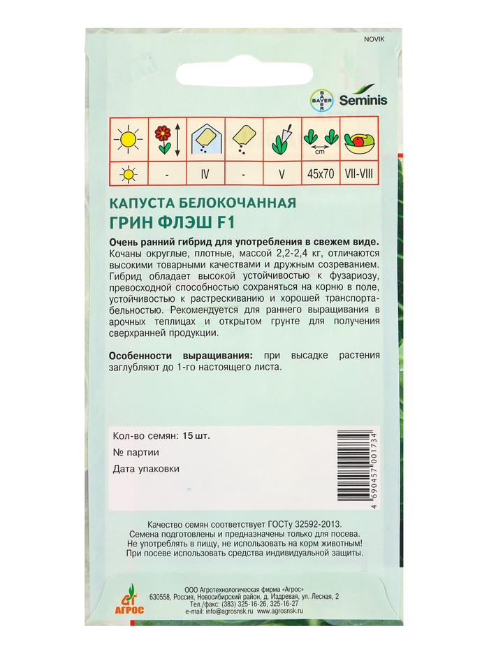 Семена Капуста «Грин флэш», F1, 15 шт., «Агросс» — Характеристики
