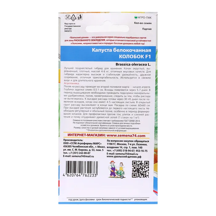 Превосходный позднеспелый гибрид отечественной селекции, от массовых всходов до технической спелости 160-170 дней. Кочаны крупные, очень плотные, массой 2-4 кг, с короткой внутренней и внешней кочерыгой. Товарная урожайность свыше 10 кг/м2. Вкус отличный, рекомендуется для свежего потребления, квашения и длительного хранения до 6 месяцев. Устойчив к фузариозному увяданию.Посев на рассаду в начале апреля. Пикировка в фазе семядолей. Высадка рассады в грунт во второй половине мая, через 35-40 дней, в фазе четырех-пяти настоящих листьев, по схеме 70х50 см.