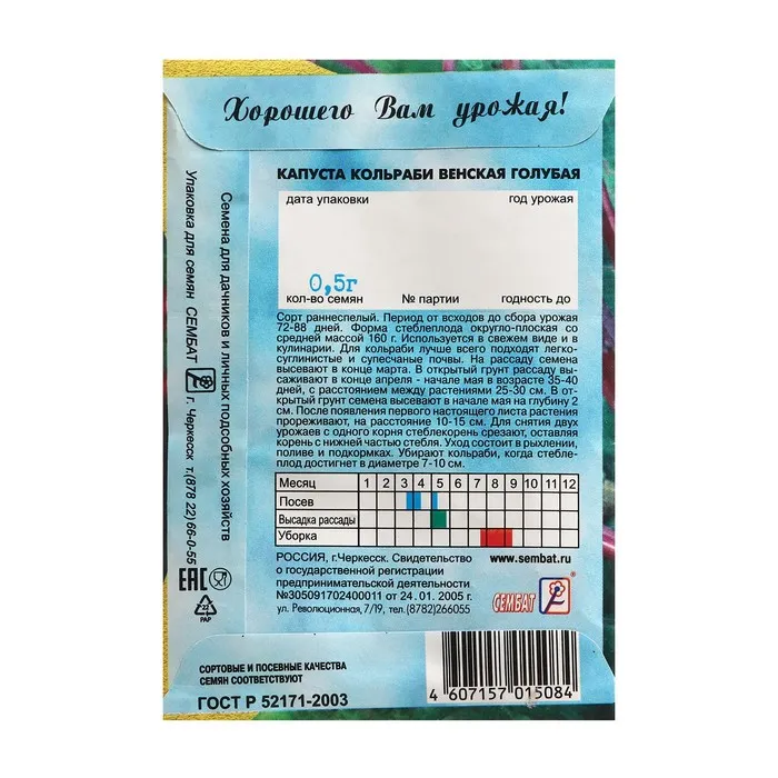 Семена Капуста кольраби "Венская голубая", 0,5 г — Характеристики