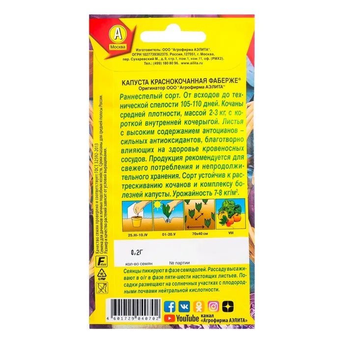 «Фаберже» — раннеспелый сорт краснокочанной капусты. Используется в свежем виде и для непродолжительного хранения. Сорт устойчив к растрескиванию кочанов и болезням. Капуста содержит большое количество антоцианов — сильных антиоксидантов.