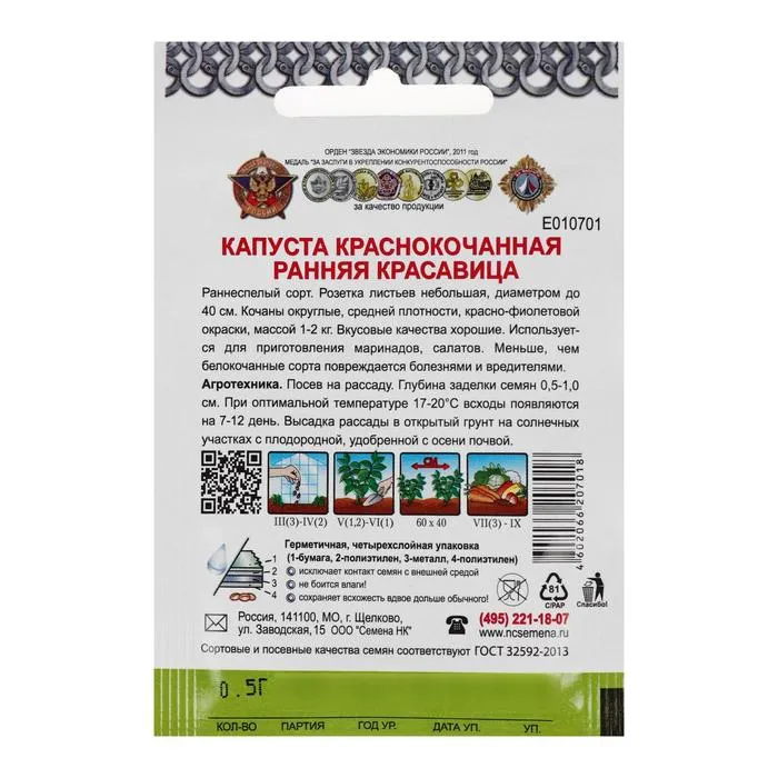 Семена Капуста краснокочанная "Ранняя красавица", серия Кольчуга NEW, 0,5 г — Характеристики