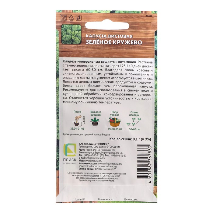 Кладезь минеральных веществ и витаминов. Растение с темно-зелеными листьями через 125-140 дней достигает высоты 60-80 см. Благодаря своим красивым сильногофрированным, устойчивым к пожелтению и опаданию листьям, с успехом используется в цветниках. Является ценным диетическим продуктом и содержит белка вдвое больше, чем белокочанная капуста. Рекомендуется для использования в свежем виде и кулинарной обработки, консервирования и заморозки. Отличается хорошей устойчивостью к кратковременному понижению температуры.