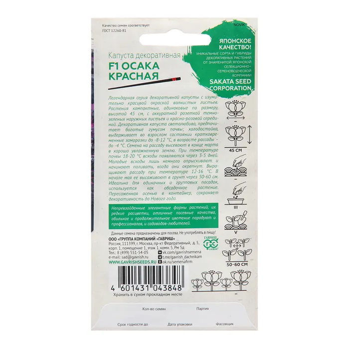 Семена Капуста "Осака красная", ц/п, F1, 6 шт. — Характеристики