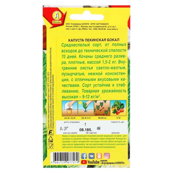 «Бокал» представляет собой среднеспелый высокоурожайный сорт, устойчивый к стеблеванию. Формирует плоды среднего размера с нежными светло-зелёными пузырчатыми листьями. Доказано, что пекинская капуста эффективна для профилактики раковых заболеваний и укрепляет иммунитет.