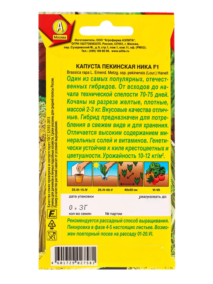 Семена Капуста пекинская «Ника», F1, 0.3 г, «Аэлита» — Характеристики
