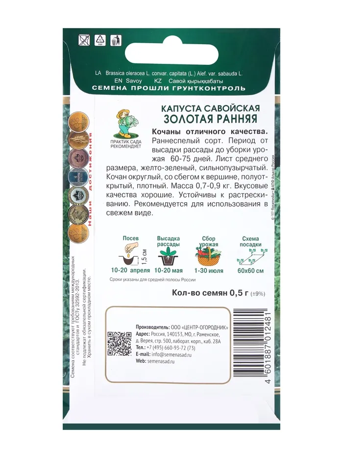 Семена капусты савойской Золотая ранняя — это проверенный сорт, который покоряет своей неприхотливостью и высокими вкусовыми качествами. Капуста обладает рыхлой, сочной структурой листьев с приятным сладковатым привкусом, что делает её идеальной для приготовления свежих салатов, тушения и маринования. Сорт характеризуется ранними сроками созревания: от всходов до сбора урожая проходит всего 70–80 дней. Выращивать её можно как в открытом грунте, так и в теплицах, что особенно удобно для регионов с коротким летом. Устойчивость к основным болезням (включая фузариозное увядание) и перепадам погодных условий гарантирует стабильный результат даже для начинающих огородников. Средняя урожайность составляет 4–6 кг/мВІ, а компактные размеры кочанов (до 1,5–2 кг) позволяют использовать их полностью без лишних отходов.