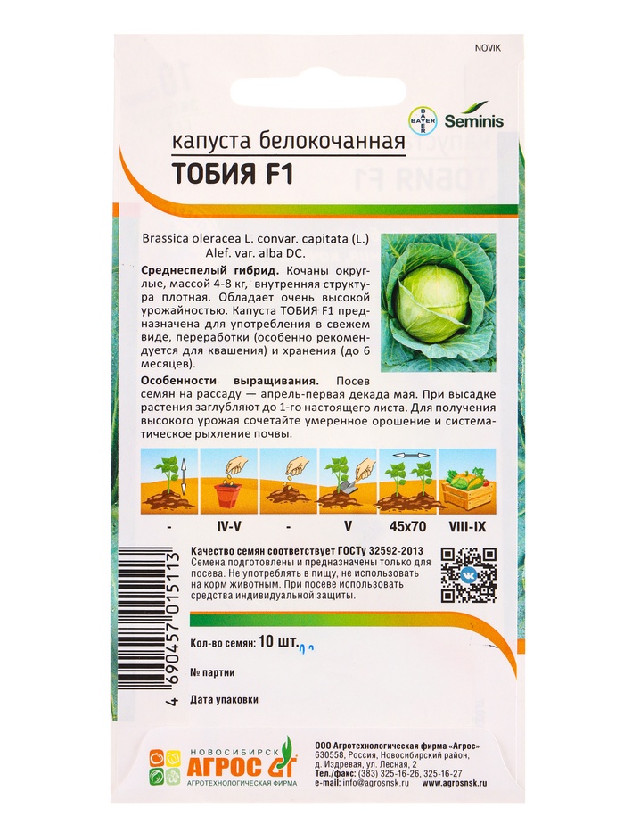 Семена Капуста «Тобия» 10 шт., «Агросс» — Характеристики