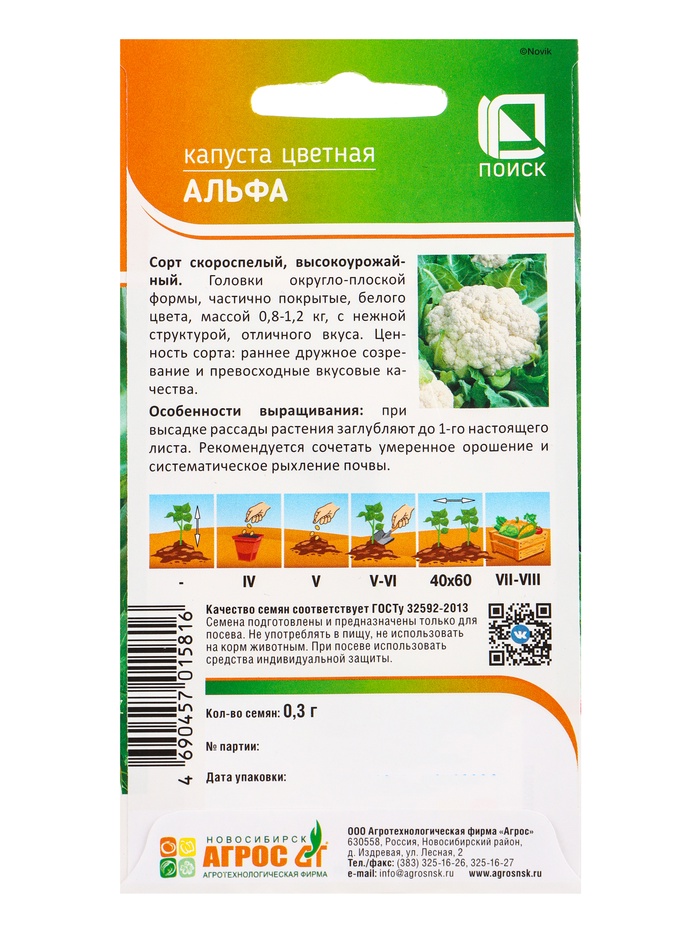 Семена Капуста цветная «Альфа» 0.3 г, «Агросс» — Характеристики