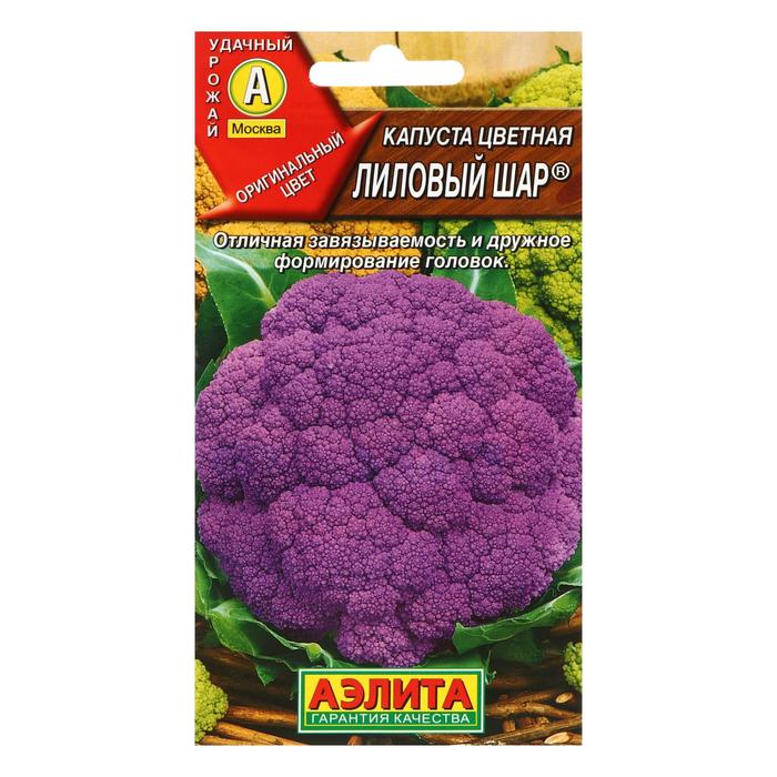 «Лиловый шар» — высокоурожайный среднеспелый сорт цветной капусты, устойчивый к осенним заморозкам и ряду болезней. Растение имеет выравненные головки насыщенной фиолетово-пурпурной окраски. Отличается длительным сроком хранения.
