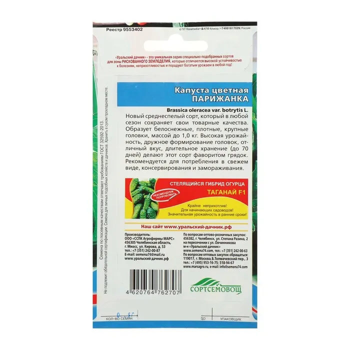 Семена Капуста цветная "Парижанка" белоснежная,до 1кг, плотная 0,25 г — Характеристики