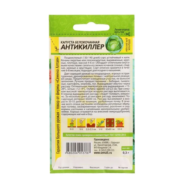 Позднеспелый (130-140 дней) сорт, устойчивый к киле Кочаны округлые или плоскоокруглые, выравненные, крупные, плотные, массой 4-6 кг. Обладает отличными вкусовыми качествами: салаты из свежих кочанов сочные, сладкие, нежные и хрустящие. Сорт отлично хранится в течении 6-8 месяцев, подходит для позднего квашения. Дает хороший урожай на плодородных, хорошо оструктуренных, дренированных почвах с нейтральной реакцией среды. Предпочитает освещенные участки, не выносит затенения. Лучшие предшественники — бобовые, тыквенные, картофель, морковь, лук. Выращивают обычно через рассаду. Оптимальная температура для выращивания +15-28°С, ночью +12-14°С. Глубина заделки 2,0-2,5 см. При слишком высокой температуре воздуха рассада вытягивается. В период выращивания рассаду следует поливать умеренно. За несколько дней до высадки, рассаду закаливают. Посадочный интервал 60х60 см. Рассаду высаживают в возрасте 50-55 дней во влажную, удобренную почву. В течение всего сезона растениям необходимы регулярные обильные поливы, своевременные прополки, рыхление и подкормки азотными и калийными минеральными удобрениями. Хорошо отзывается на внесение микроудобрений, содержащих магний и бор.