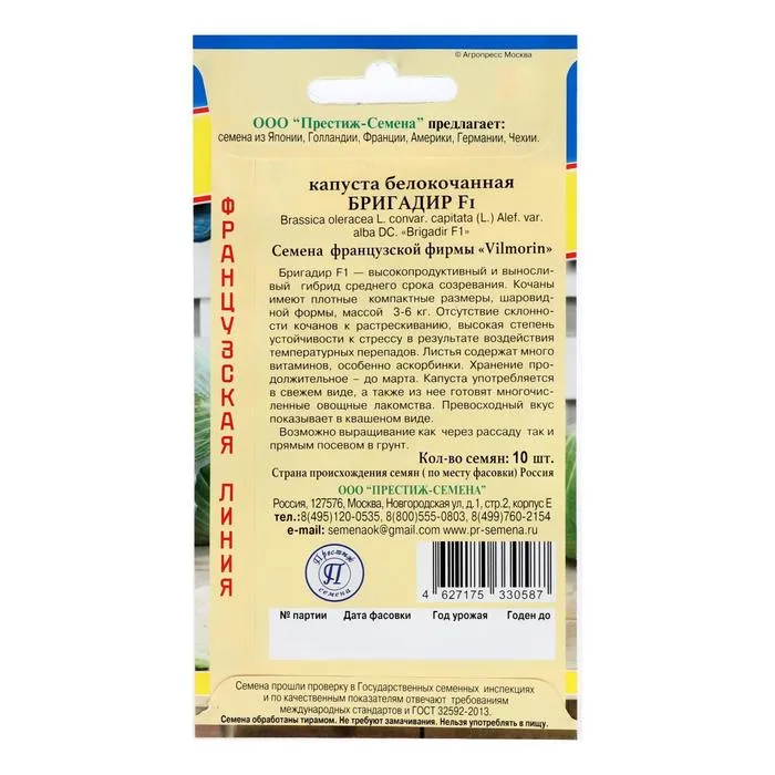 Высокопродуктивный и выносливый гибрид среднего срока созревания. Кочаны имеют плотные компактные размеры, шаровидной формы, массой 3-6 кг . Отсутствие склонности кочанов к растрескиванию, высокая степень устойчивости к стрессу в результате воздействия температурных перепадов. Листья содержат много витаминов, особенно аскорбинки. Хранение продолжительное – до марта. Капуста употребляется в свежей форме, а также из нее готовят многочисленные овощные лакомства. Превосходный вкус показывает в квашеном виде. Возможно выращивание как через рассаду так и прямым посевом в грунт.